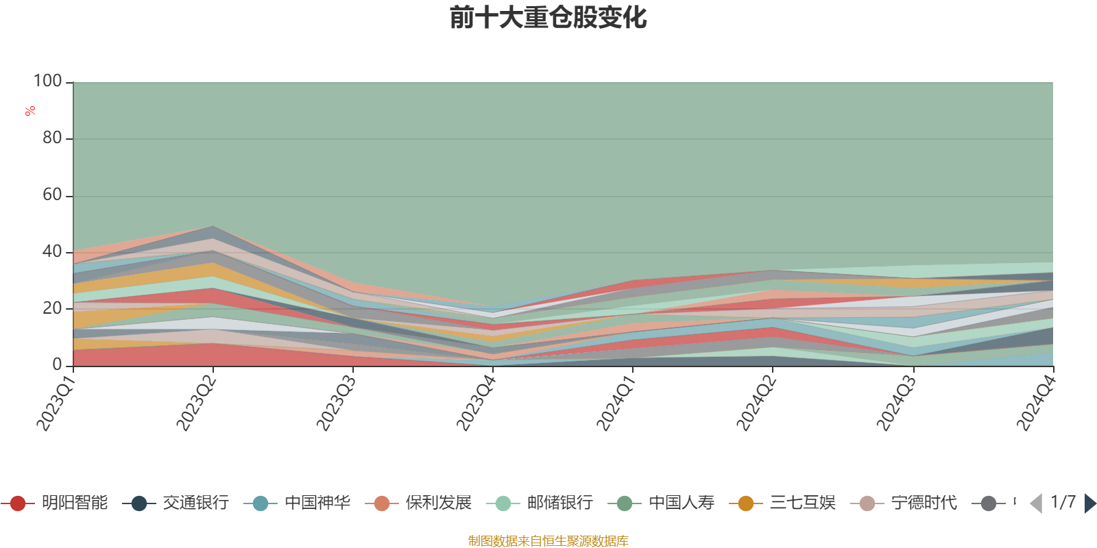 截至2024年四季度末,基金十大重仓股分别是长江电力、中国神华、光大银行、东方电气、宝钢股份、中国国航、国投电力、中国人寿、中国中车、农业银行。